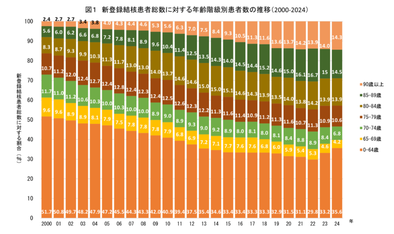 これは、かつて結核がまん延した際に感染し、若いうちは発症が抑えられていたのが、高齢になって免疫力が落ちたことなどから発症する人が増えたと考えられています。