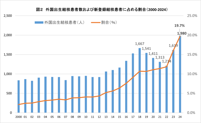 また、近年は若年者を中心に外国出生者の罹患者が増えています。