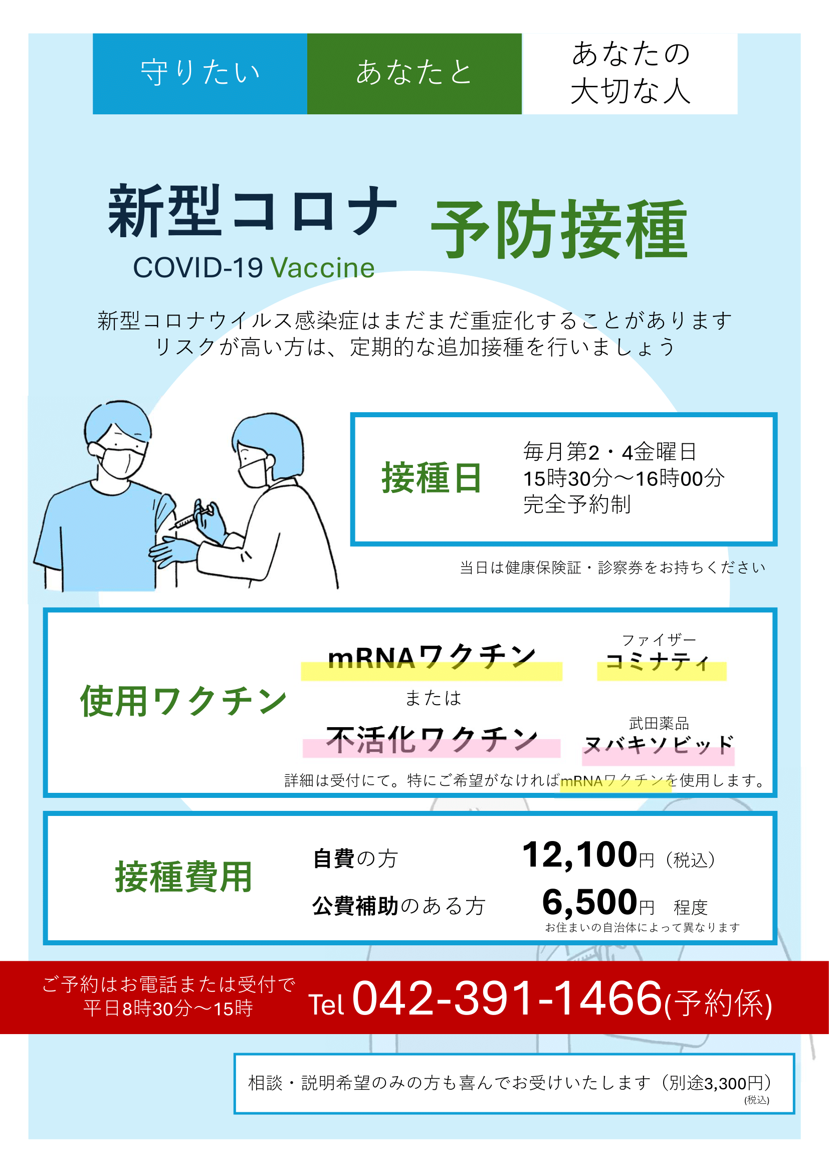※ご予約の際に接種費用についてご案内いたします。